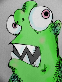 I originally sketched this guy on a little peice of paper with an ink pen (my favorite) and then colored it using the Ipad. The rough sketch is below. Monsters are so fun because you can never go wrong because they are just made up creatures....I think.